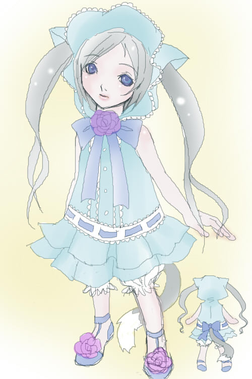猫耳フードの耳部分からツインテール出してる感じにしてみたけどどーだろう?